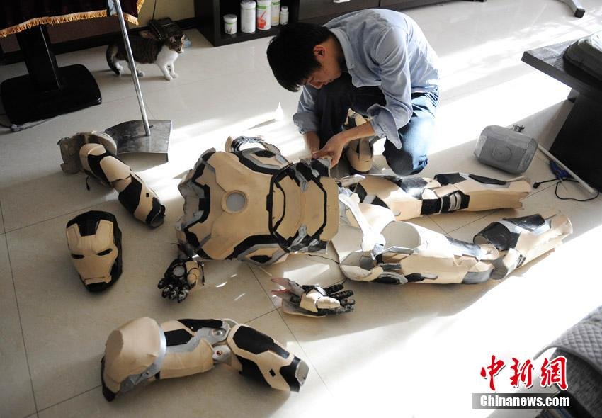 祖秉群正在整理一套钢铁侠的服装。张瑶 摄