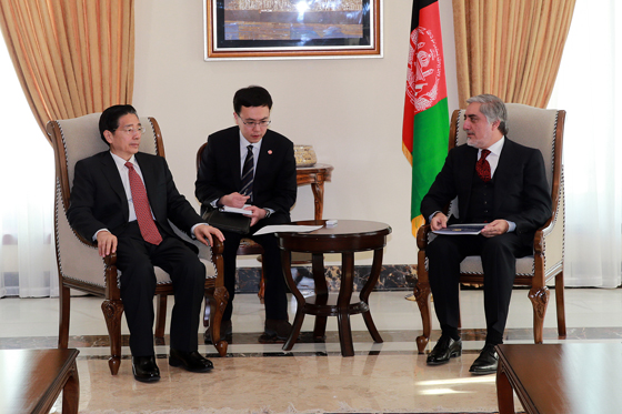 11月30日,阿富汗首席执行官阿卜杜拉在首都喀布尔会见到访的中国国务委员郭声琨。
