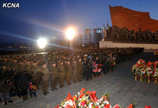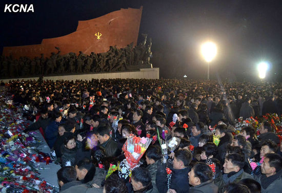 17日凌晨,朝鲜民众前往平壤万寿台悼念金正日。