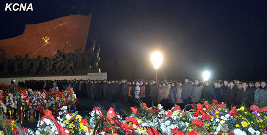 17日凌晨,朝鲜民众前往平壤万寿台悼念金正日。
