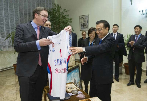 新华网北京12月18日电 据新华社“新华国际客户端”报道,17日晚,李克强总理收到了一件特别的礼物:塞尔维亚国家篮球队的1号球衣。武契奇总理赠送的这件白色球衣上特别写上了李克强名字的中英文。