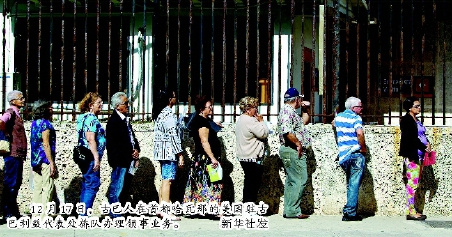 12月17日,古巴人在首都哈瓦那的美国驻古巴利益代表处排队办理领事业务。 新华社发