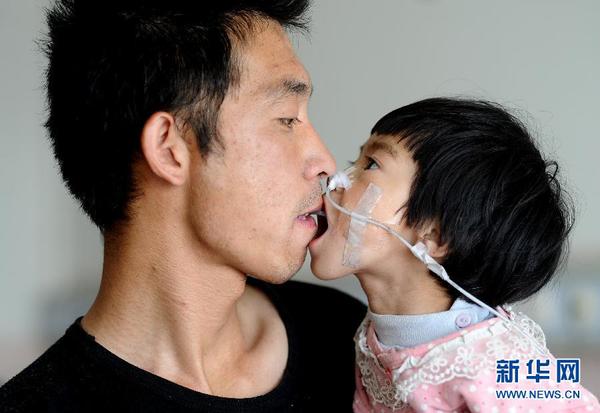 父亲嘴对嘴为患病女儿喂食 坚持500多天