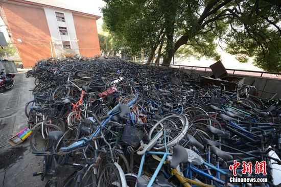 12月22日,湖南一高校操场旁的宿舍楼前,成百上千的废弃自行车堆积如山,从高空俯瞰,犹如一个大型的“自行车坟场”。校内部分学生建议学校将这些自行车统一回收,进行翻新处理,捐赠给贫困生或者变成校园公共自行车。