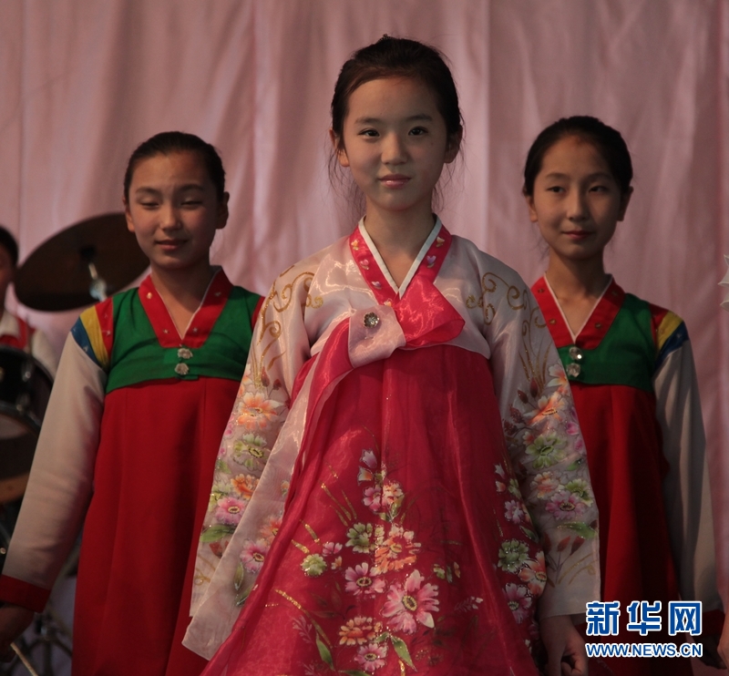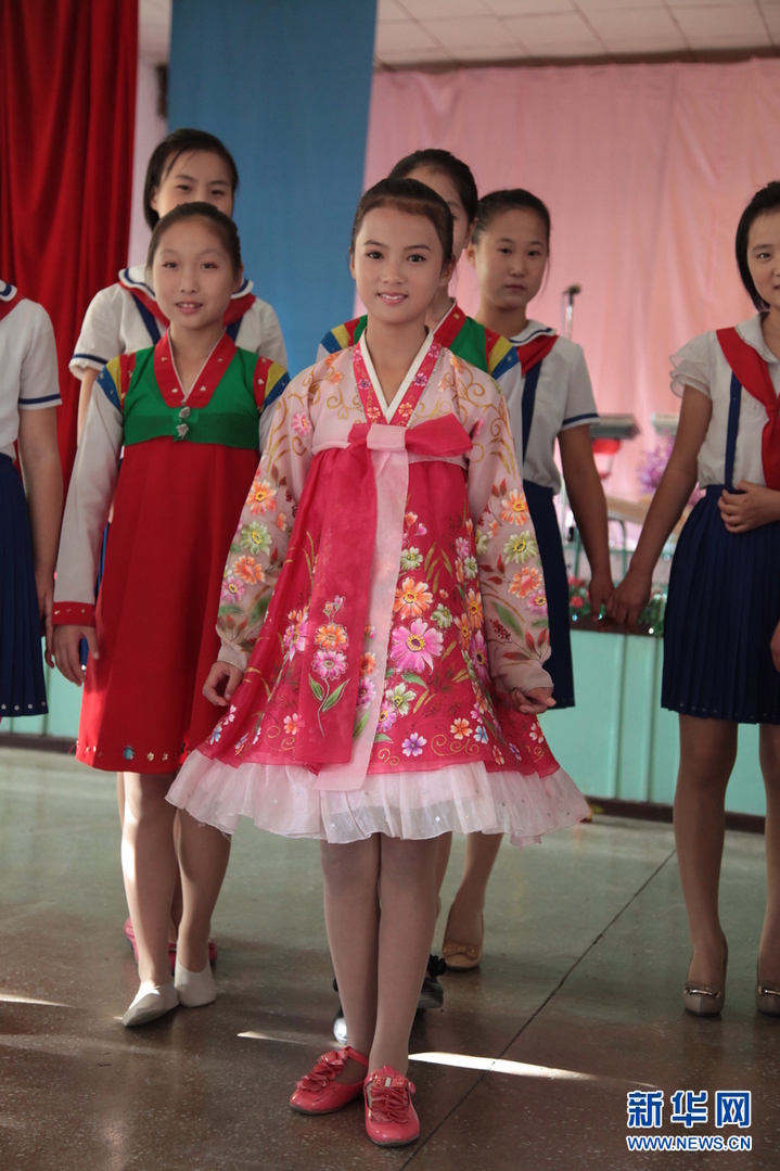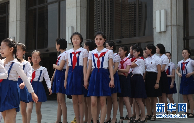 朝鲜的女学生更是能歌善舞,记者在采访学校时,观看了学校安排的学生表演,他们吹拉弹唱,样样精通,令人十分拜服。图为采访时正值金正恩上台后全国各地“少年团”来平壤,少年宫的学生在迎接。新华社记者曾涛摄