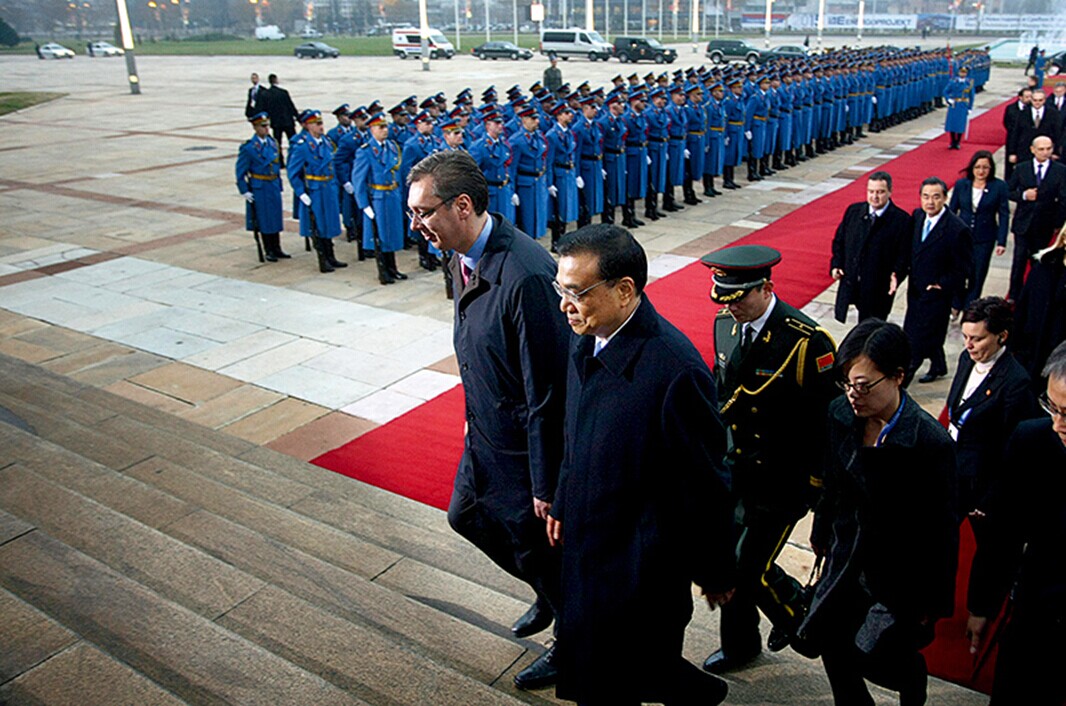 当地时间2014年12月17日,李克强在塞尔维亚贝尔格莱德同塞尔维亚总理武契奇(左一)举行会谈。两国签署了包括双边经济技术、能源、金融、航空、文化等多个领域的合作文件。