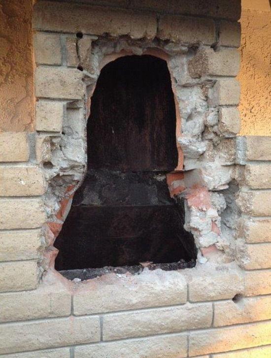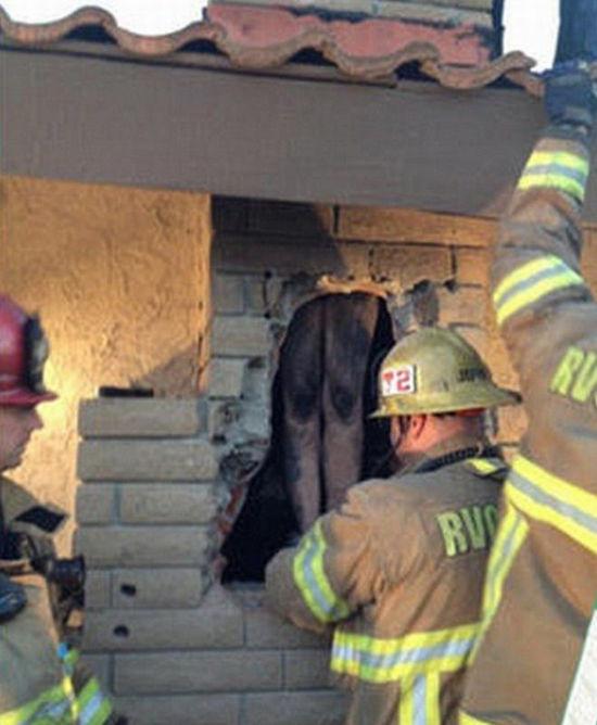 消防员被迫在赫尔南德兹家中的墙壁上凿洞,将裸身女子救出。