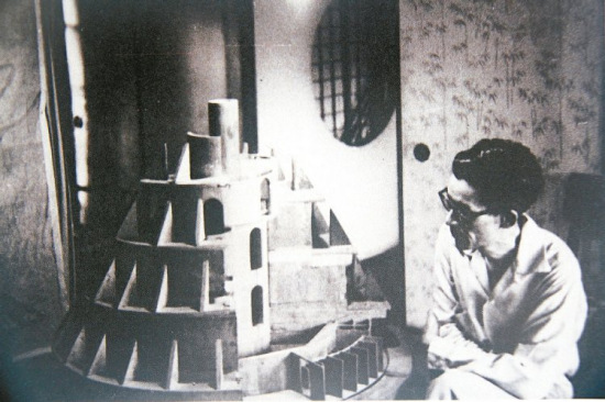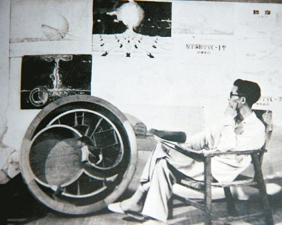 台湾文化大学建筑系第一届系主任卢毓骏家,当年坐在其所设计的草山防空洞模型,思索防爆设计1