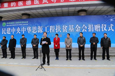 1月9日,民建中央中华思源工程扶贫基金会向环县捐赠医疗设备补助资金仪式在环县人民医院举行。民建甘肃省委会主委宁崇瑞,省卫计委纪检组长段巍出席捐赠仪式并讲话。民建中央中华思源工程扶贫基金会办公室主任陈颖、“天使计划”项目部主任戈录城,庆阳市委常委、统战部长、市委秘书长闫晓峰出席捐赠仪式。捐赠仪式由环县副县长何治国主持。
