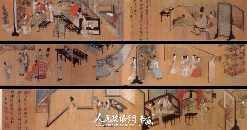 唐寅的人物画可见“士气”所寄,《射扬图》是一件落实人名之作,所绘人物是文徵明的叔父文彬,画上有祝允明、文彭、陈鎏三人题跋。比较难得的还有唐寅临《韩熙载夜宴图》,人物眼波流转,造型准确,用色明丽浓艳。