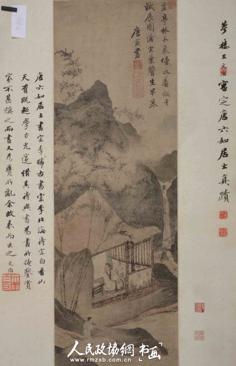 辽宁省博物馆藏的《虚亭听竹图轴》则是其代表作品,图绘溪山隐逸之景,风格凝重,意境清幽。唐寅的人生虽磨难颇多,然在山水画方面的创作一生从未止步,即使在晚年落魄潦倒到极致之时,也仍坚持创作。