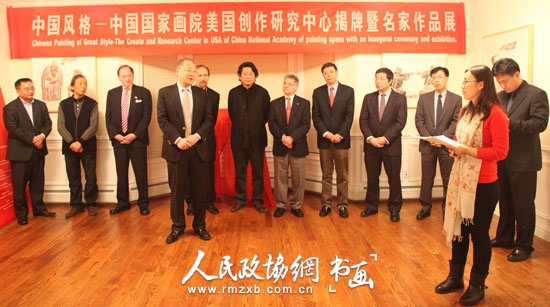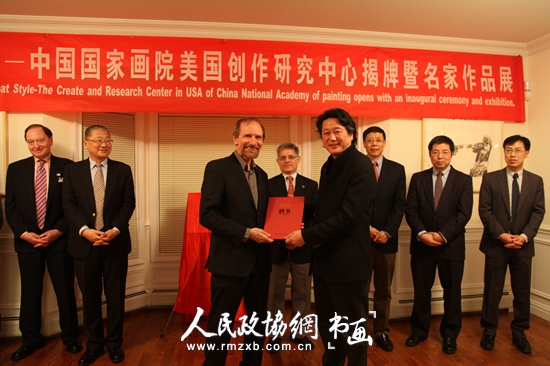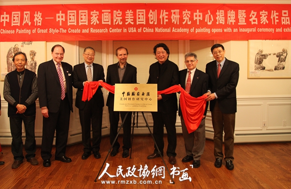 “中国国家画院美国创作研究中心揭牌活动”近日在纽约举行。中国驻纽约总领事馆文化参赞王燕生,中国国家画院副院长张江舟,《美国艺术》杂志社主编、中国国家画院研究员Richard Vine,美国艺术家协会主席Thoms Valenti,美国纽约邮报董事长Hoffen Berg,美国中国文化艺术基金会主席朱瑞凯,中国国家画院画家、研究员张立柱为中心揭牌,中美友人100余人参加了活动。