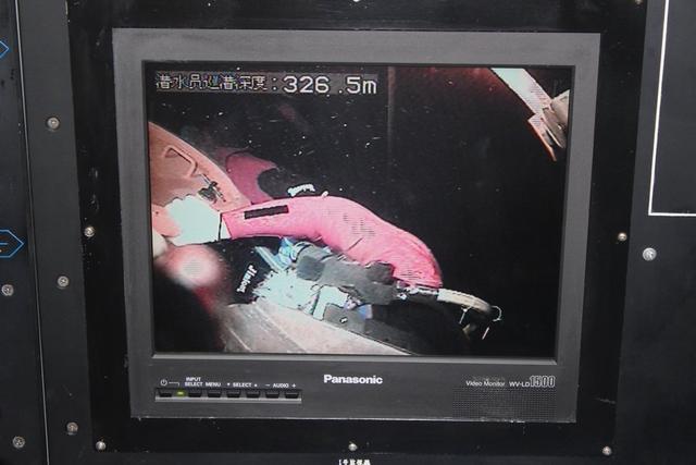 入水近一个小时后,潜水钟抵达300米深的海底。
