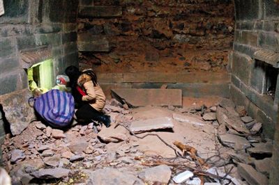 在最中间的墓葬地宫内,地面上砖石散落,留有一个蓝白条纹的尼龙带,内装有棉被,上面布满灰尘,地宫入口处,则留有七八个白色的塑料饭盒。