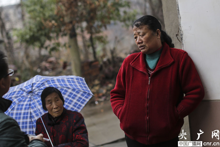 村民付友仁靠在自家门框上,付友仁,70岁,株洲市石峰区桎木组村民。丈夫戴玉华2014年因肺癌去世,时年74岁。