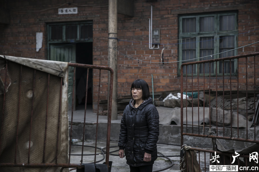 村民汤明华站在自家院子里,汤明华,61岁,株洲市石峰区桎木组村民。丈夫李培芳2014年因肝癌去世,时年62岁。