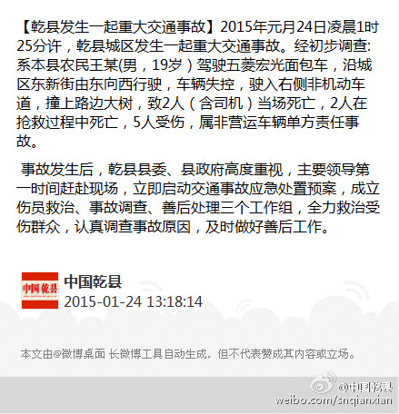 关键词:陕西乾县重大交通事故 面包车撞上路边大树
