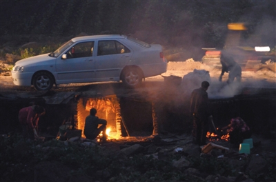 1月20日,四川达州,当地民众在政府规划点或城郊自行熏制腊肉。此前,当地有官员排查空气质量重度污染的源头时,发现熏腊肉成了达州空气质量差的主要诱因。