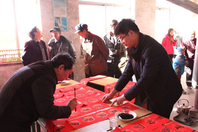 此次活动,民革忻州市委会特意前往太原市购买了写春联专用的宣纸,并利用休息时间书写50余幅春联。在活动现场,忻州市著名书法家、民革忻州市委会副主委杨培旺及民革党员、著名书画家殷渭凌挥毫上阵,不一会儿,散发着淡淡墨香的对联便送到了群众手中。本次活动现场共为该村及周边四个村的村民现场书写春联300余幅。