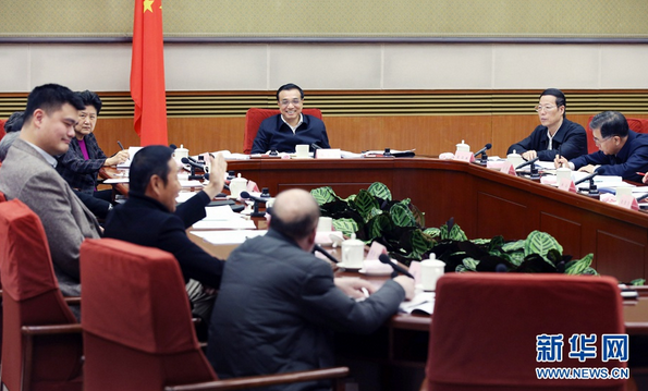 1月27日,国务院总理李克强在北京中南海主持召开座谈会,听取教育、科技、文化、卫生、体育界人士和基层群众代表对《政府工作报告(征求意见稿)》的意见和建议。 新华社记者 姚大伟 摄