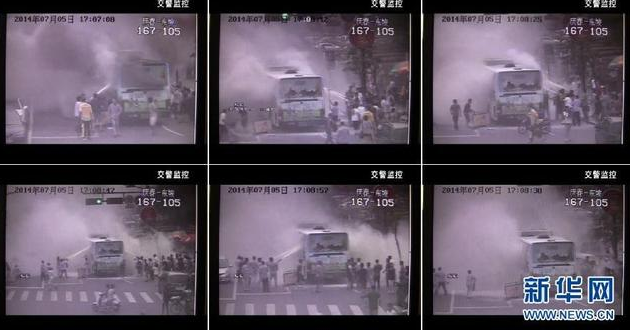 2014年7月5日,一辆载有80余名乘客的杭州7路公交车途径杭州东坡路与庆春路交叉口时突然发生燃烧,沿途市民经过后纷纷参与到救火和救人的队伍中,但大火迅速蔓延,在短短6分钟里依然造成30人受伤,其中重伤者达到20人。事件后被警方确定为放火案件。同月8日凌晨,放火嫌疑人身份被确定,杭州警方宣布该案告破。