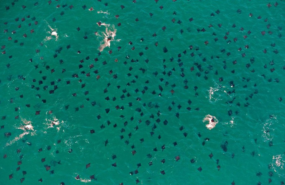 图为成千上万“魔鬼鱼”凌空飞跃墨西哥海湾。