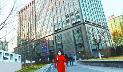29日下午,位于东城区朝阳门街道上的凯恒中心B座大楼门前,穿着厚外套和正装的人们进进出出,大门如??拧R宦サ男前涂丝Х鹊昀?,有不少大厦里的员工和客户在喝咖啡、聊天。楼里楼外的员工中,没有人戴口罩。楼前楼后,也没有任何隔离标志。
