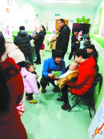 29日早8点,东城区东四保健科里,家长们抱着孩子排成长队,医生护士忙得抬不起头。一名抱着孩子的女士告诉记者,她是听说附近暴发麻疹疫情,所以特意请了假,带孩子过来打疫苗。“其实本来也计划这个月打,孩子8个月了??梢惶嫡饣厥露?,一天都等不及了。具体是哪里出了麻疹,咱们也不确定。不管是哪儿,为了孩子,还是保险起见为好。”