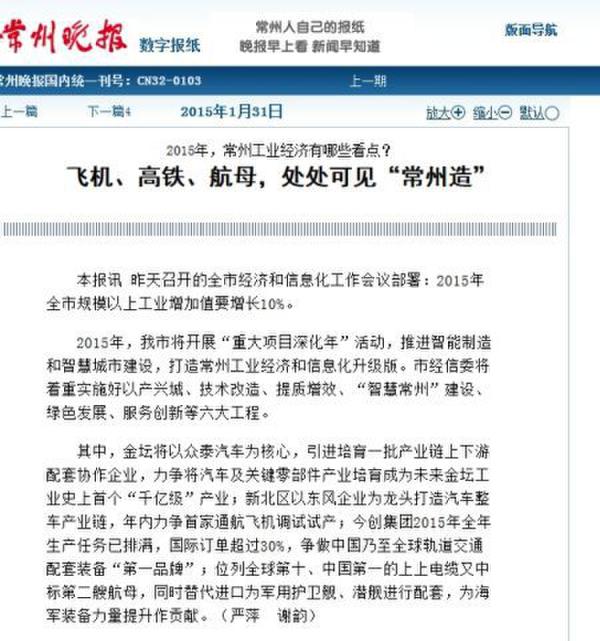 【环球军事报道】1月31日,常州市人民政府新闻办公室官方微博及《常州晚报》的消息披露,该市某电缆企业已“又中标第二艘航母”,环球军事随后查阅的相关报道表明,该电缆企业曾为为我国第一艘航母“辽宁舰”提供过产品。尽管此前有很多关于中国是否建造国产航母的话题,但这次是首次有官方机构正式明确中国“第二艘航母”的消息。