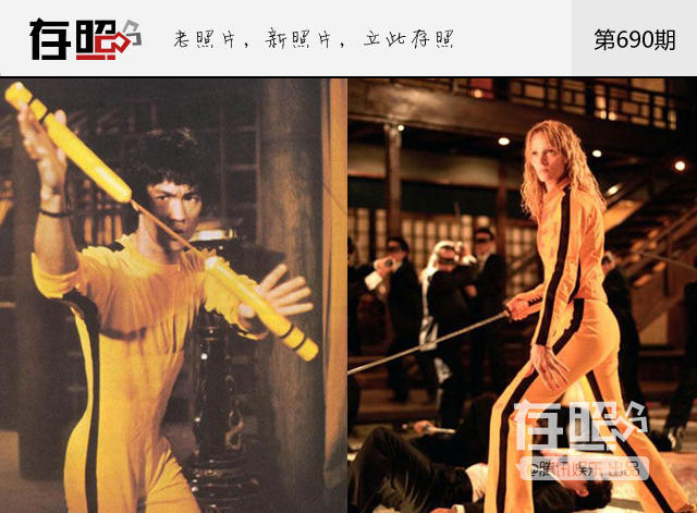 【李小龙为好莱坞众星偶像】“功夫之王”李小龙是一个神话,他将中国功夫引向了世界,李小龙在全球拥有着数以亿计的粉丝,这其中便包括了无数好莱坞的明星,诸如美国女星希尔顿、打星斯科特·阿金斯等,尼古拉斯凯奇更因为8岁时看了一部李小龙的电影,才有了当电影演员的梦想。除了明星外,李小龙在国外不乏大导演追随者,鬼才导演昆汀·塔伦蒂诺也是李小龙的粉丝之一,他在《杀死比尔》中曾特地安排主演乌玛·瑟曼身着黄黑相间的运动装,向偶像李小龙致敬。(左图为李小龙,右图为《杀死比尔》剧照)