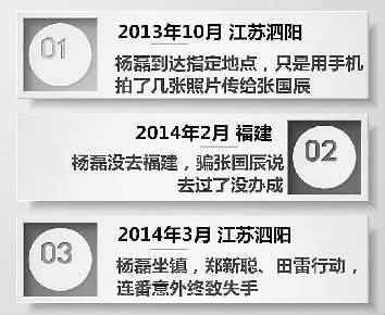 “杀手”全部到位。张国辰又打给杨磊约1.5万元。在杨磊安排下,田雷和郑新聪会面了。
