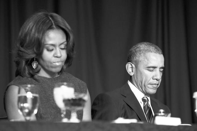 5日,奥巴马夫妇出席全国祈祷早餐会。