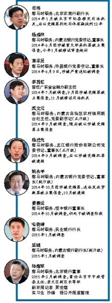 新京报记者梳理发现,2014年落马的多名银行高管,被调查的时间集中在6月之后。 新京报记者 贾世煜 实习生 沙璐