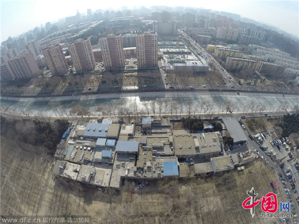 2015年2月10日,北京,航拍北京肿瘤医院旁形成的“癌症岛”。它其实是一片居民区,看上去好像是高楼群中的一个小岛。法制晚报 付丁/东方IC