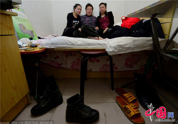 2015年2月5日,北京,探访北京肿瘤医院旁形成的“癌症岛”。来自内蒙的朱连忠一家三口,朱连忠刚被查出患有肺癌。法制晚报 付丁/东方IC