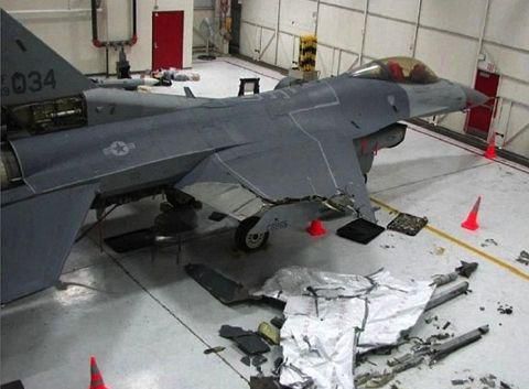 美一架F16空中撞机 丢半边机翼后安全着陆(图)