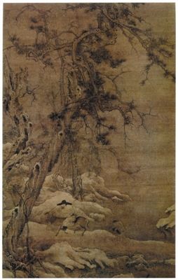 南宋的画家,一部分仍沿袭北宋大师的创作路径,以细腻的皴法表现壮阔的山川形势;另一部分转向偏角山水,以局部代全景,李唐、刘松年、马远、夏圭是其中的代表人物。梅兰竹菊确立在文人画题材中的地位,也是在南宋完成的。