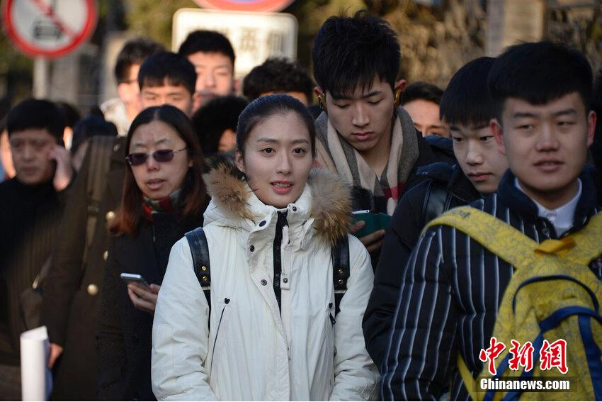 2015年2月26日,山东省潍坊市,在潍坊学院所设立的一处艺考报名处挤满了前来报名考试的考生。从2月27日—3月13日,共有355所省内、外院校在山东相关地市陆续开考,2015年山东省在济南、青岛、淄博、潍坊统一设立省外院校艺术类专业考试考点。艺考生们纷纷奔赴各个考场开始自己的艺考之路。 图为2015年2月26日,北京,考生们在中央戏剧学院门前等待进入考场,俊男美女云集。 图片来源:CFP视觉中国