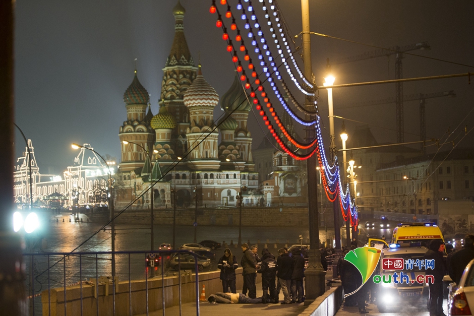当地时间2015年2月28日,俄罗斯莫斯科,警察在鲍里斯-涅姆佐夫的尸体旁进行调查。据国外媒体报道,俄罗斯反对派政治家、前副总理鲍里斯-涅姆佐夫遭射杀身亡。据悉,事发时涅姆佐夫走在克里姆林宫附近的大街上,身份不明的凶手朝他开枪。涅姆佐夫在叶利钦在任时期曾任第一副总理,现猛烈批评总统普京,经常组织街头游行,并揭露官员贪腐,他原定在3月1号出席莫斯科一个反对派的大型游行?! ⊥计鹈篜avel Golovkin/东方IC