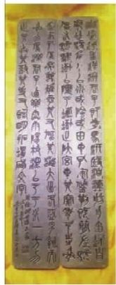 石鼓文,我国现存最早的刻石文字之一。在十块鼓形石上,用籀文(即大篆)分刻着十首为一组的四言诗。因内容为歌咏秦国君的游猎情况,也称为“猎碣”。唐初在天兴(今陕西风翔)三畸原出土。以前有人误认为周文王或宣王时的石刻。近人考证为秦刻石,但仍有秦文公、秦穆公、秦襄公、秦献公等不同说法。历来都很推崇其书法。现在其中一石字已磨灭,其余九石也有残缺,藏北京故宫博物院。