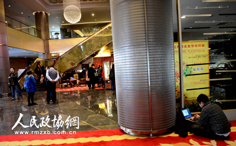 人民政协网北京3月2日讯(记者 田福良)3月2日,即将召开的全国政协十二届三次会议共有3100余名海内外记者报名参加,报名参会记者人数已超过全国政协委员人数。记者报道大军中每个平凡的个体都在各自的角落里默默工作着。现场报道、发稿、再跑会....如此反复就把最新的政策和两会新闻带给大众。图为记者在现场就地发稿。人民政协网记者  田福良 摄