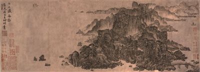 中国山水画发端于魏晋,顾恺之有《画云台山记》传世,唐人张彦远记述这一时期:“其画山水,则群峰之势,若钿饰犀栉?;蛩蝗莘?,或人大于山。”是作为人物画的衬景。南朝刘宋的宗炳《画山水序》说:“今张素绡以远映,则昆、阆之形,可围于方寸之内。竖划三寸,当千仞之高;横墨数尺,体百里之迥。”有人认为宗炳才是中国山水画的真正鼻祖。谢赫《古画品录》把前人的创作实践归纳为“六法”,自然不外山水画。至唐代吴道子为明皇作“蜀道写貌山水”,李思训、李昭道父子有《江帆楼阁图》、《明皇幸蜀图》存世。张璪再将自己的创作实践概括为“外师造化,中得心源。”经五代荆浩、关仝、董源、巨然,各自以不同生活区域的地形地貌为粉本,抽象概括出不同的皴法,呈现不同风格的画卷,把中国山水画推向成熟。北宋李成、范宽、郭熙,将这业已成熟的画种往更加精致、更加气势磅礴方向又推进一步。这就是我们遗憾在南京博物院无法见到的前半部山水画史,这些经典作品大都在台北故宫,幸运的是日本二玄社的仿真复制让我们能够看到这些名迹下真迹一等的风采。