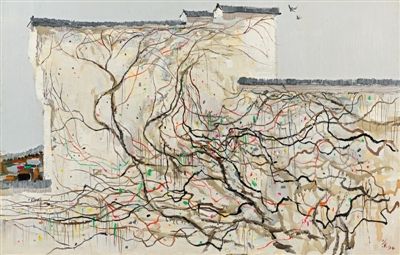 中国笙演奏家吴彤为吴冠中六幅画作谱写了四首音乐,其中包括吴冠中作品《墙上秋色》和《彩山》(图)。