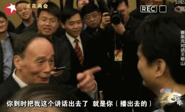 王岐山:今天你不是把扩音器打开了吗?你还拿着自拍这个,《东方眼》,吓人哪,你到时候把我这个讲话出去了,就是你(播出去的)。