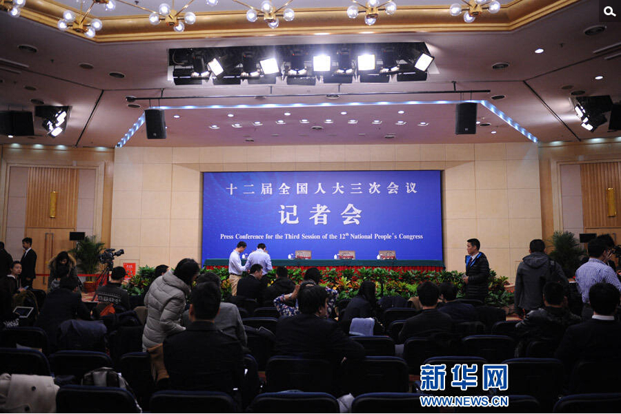 十二届全国人大三次会议新闻中心于3月8日(星期日)10时在梅地亚中心多功能厅举行记者会,邀请外交部部长王毅就中国的外交政策和对外关系相关问题回答中外记者提问。新华网/中国政府网 翟子赫 摄