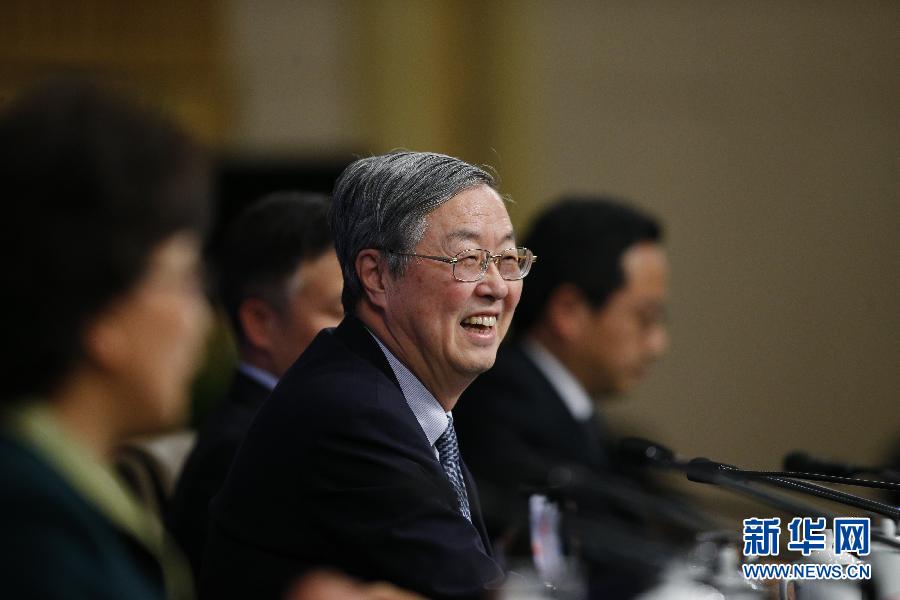 3月12日,十二届全国人大三次会议新闻中心举行记者会,邀请中国人民银行行长周小川,中国人民银行副行长、国家外汇管理局局长易纲,中国人民银行副行长潘功胜,丝路基金有限责任公司董事长金琦就“金融改革与发展”回答中外记者提问。新华社记者 殷刚 摄