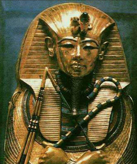 图坦卡蒙法老墓在1922年被发现时,是埃及帝王陵中规模最小但保存最为完好的一座。当时在墓中发现了3500多件文物。其棺椁共有七层,外面是四层木质棺椁,里面又有三层,分别为石棺、硬木人形棺和黄金人形棺。最内层的是黄金颜面肖像人形棺,前后均用3厘米厚的金板制成,长187.5厘米,宽51.3厘米,重134.3千克。黄金颜面肖像人形棺表面装饰豪华,工艺精湛,还用蓝宝石、玻璃等进行了装饰。