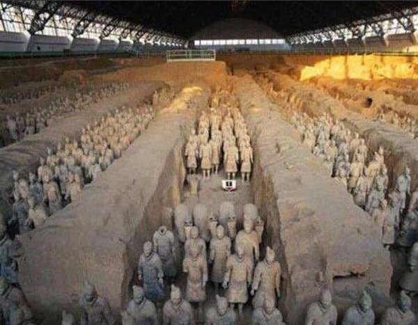 中国第一个皇帝秦始皇在驾崩之前统一了中国,下令修建长城,对中国实行残酷统治。他当时唯一惧怕的是天帝的震怒。他为此下令修建一座庞大的陵墓,让8000名真人大小的彩绘武士守卫。经过了70多万劳工和工匠30多年的劳作,陵墓才得以竣工。其中许多人还被活活封闭在陵墓内,以免他们泄露有关财宝和人口的秘密。尽管采取了上述种种措施,但盗墓者在秦始皇死后一直在寻找陵墓的踪迹,但个个无果而终,直到1974年农民挖井时才发现了墓址。