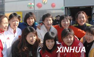 资料图:孙雯(后右二)、温莉蓉(后右三)、范运杰(前右三)等参加1999年世界杯的前女足国脚球员合影。图片来源:新华网。
