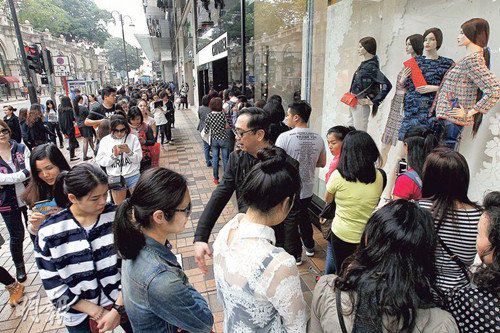香港奢侈品店减价吸客 香奈儿店铺前现排队人龙